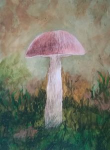 stillleben mit glaskörper, kupfergefäß, physalis, schalotten und kartoffel
